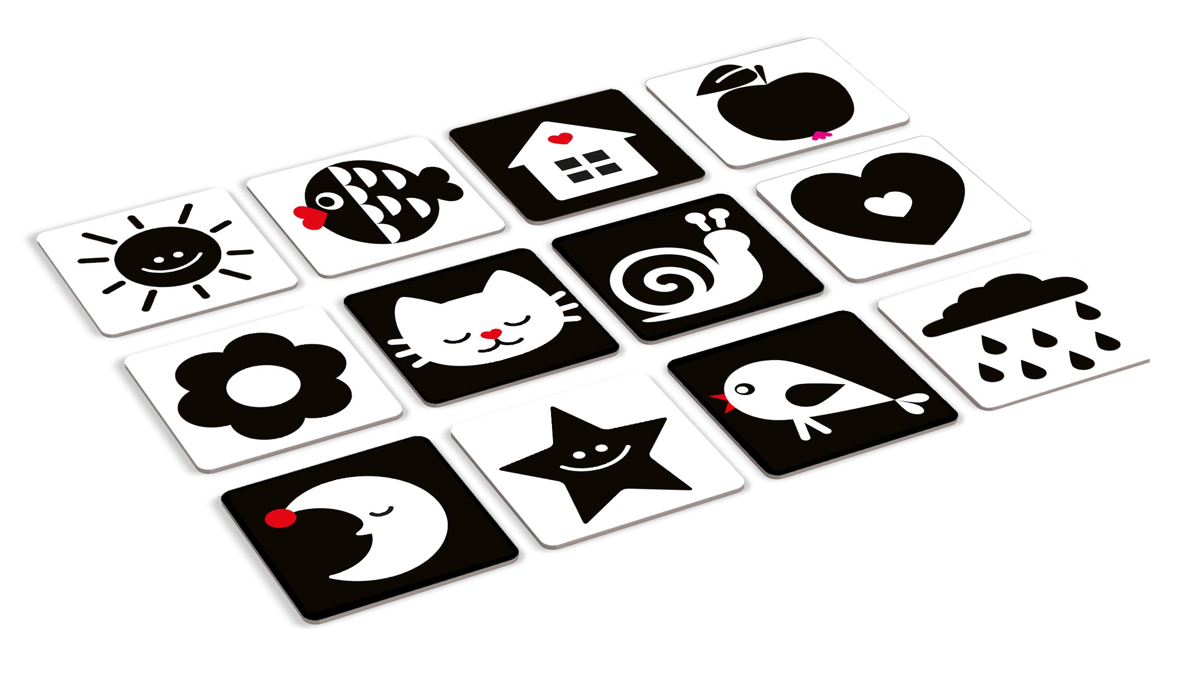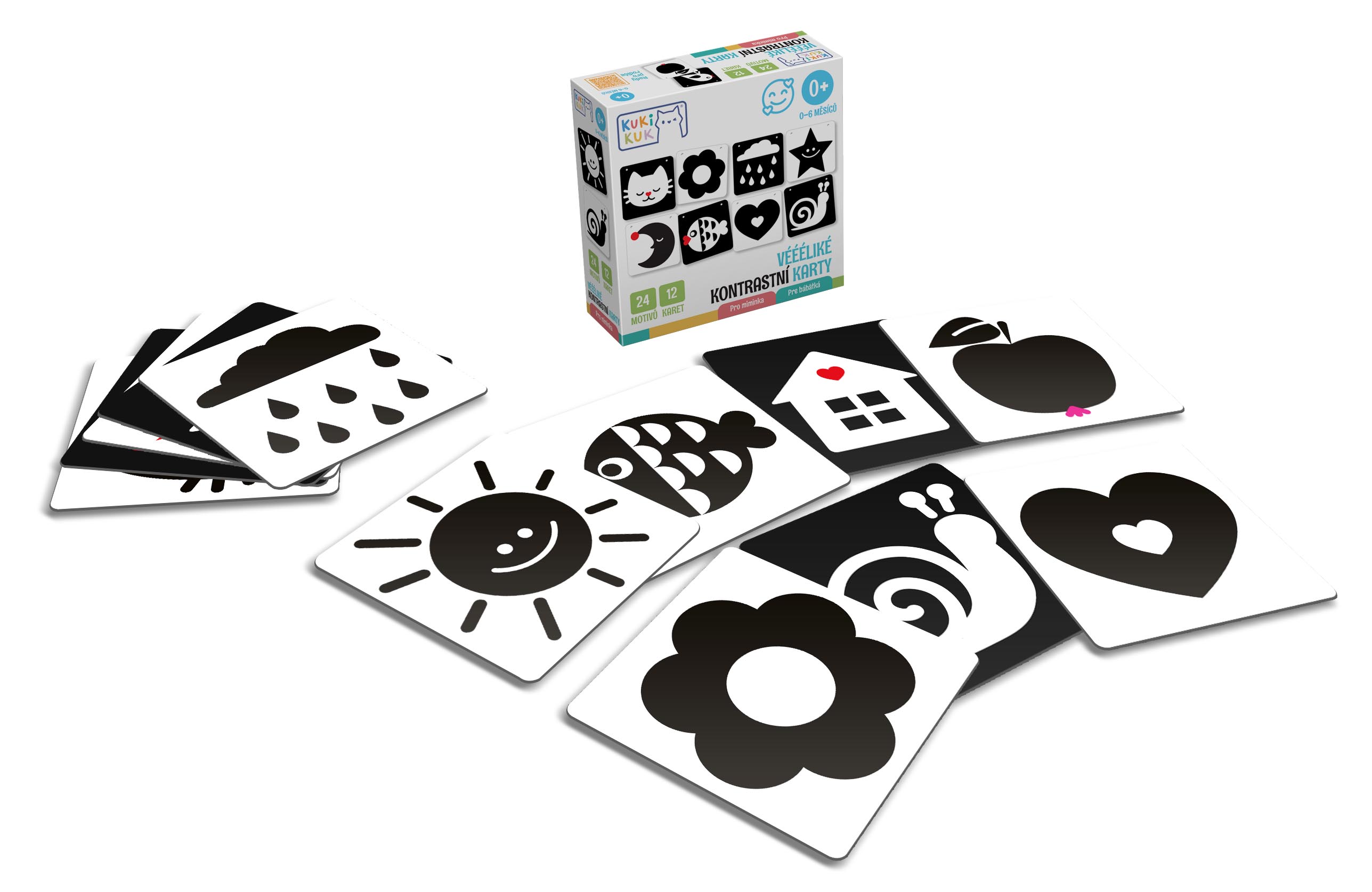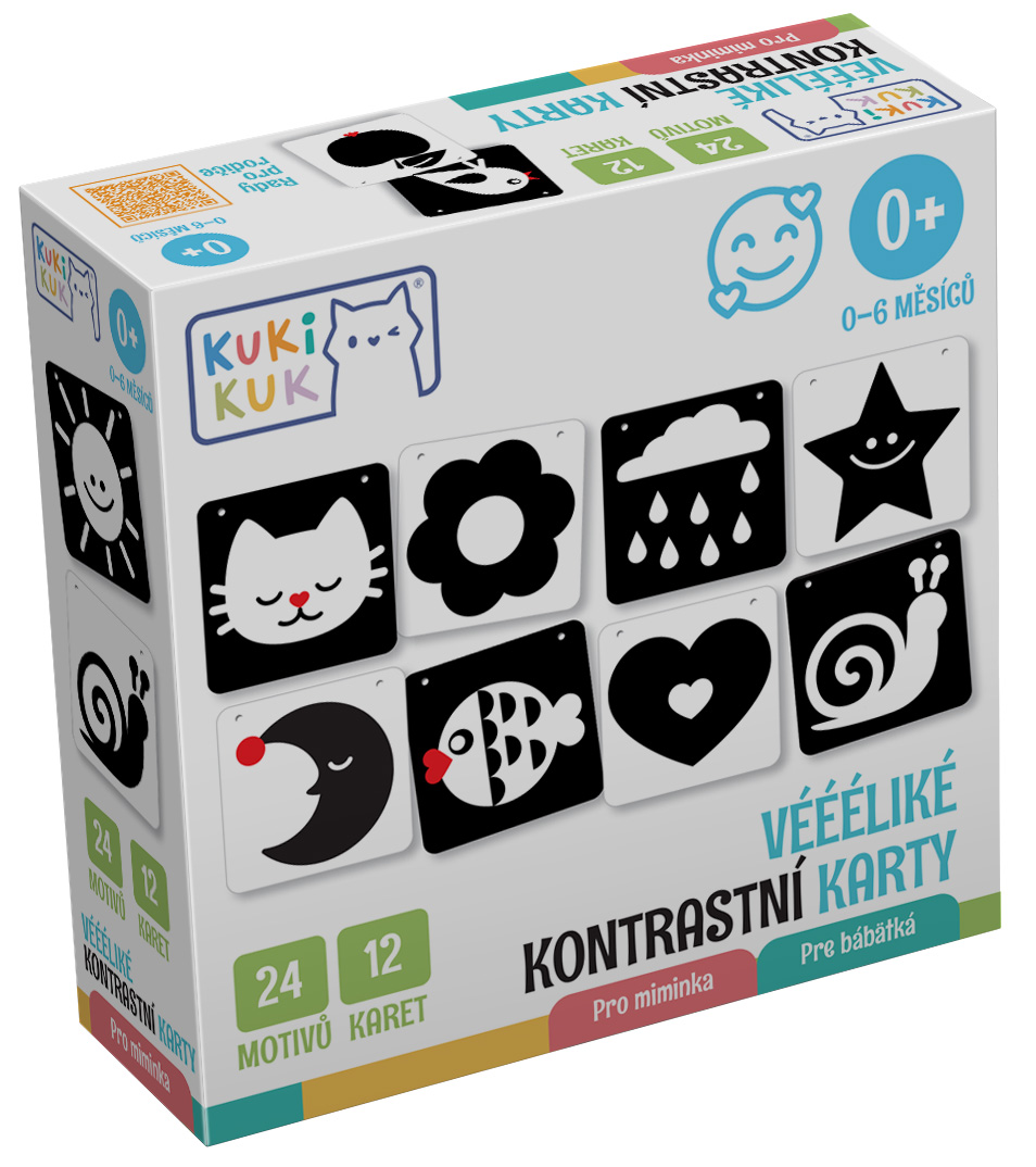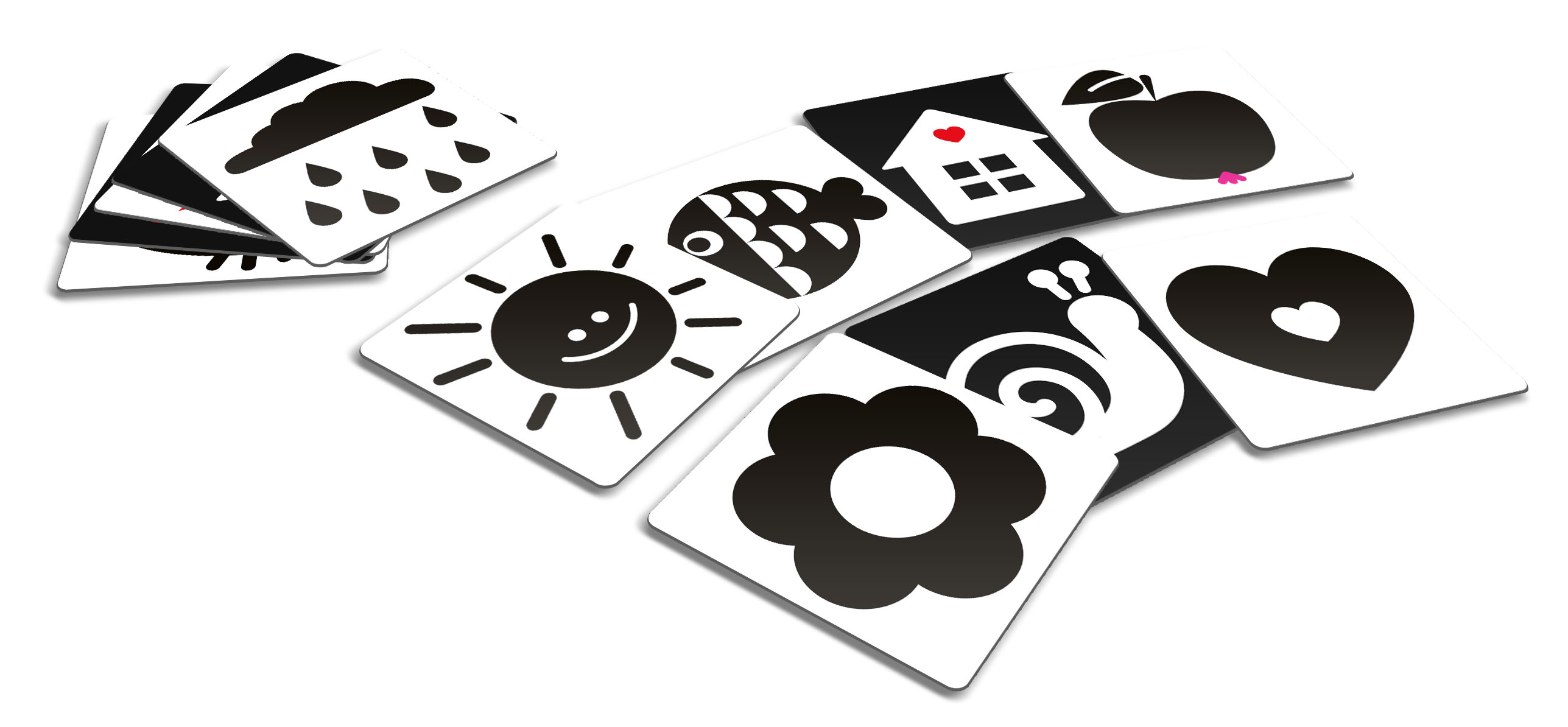 Sada 24 velkých kontrastních obrázků je ideálním prostředkem pro rozvoj zraku a pozornosti miminek. Jejich používání je plně podporováno odborníky.