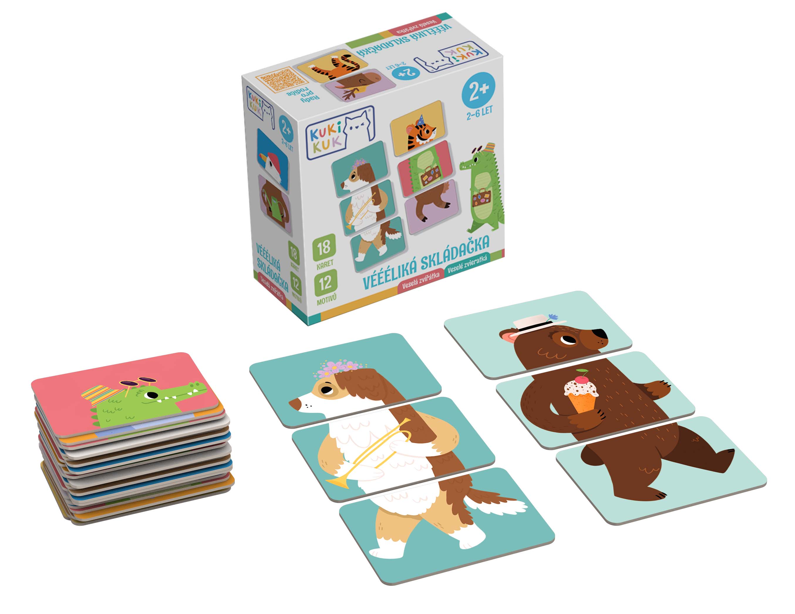 Skládání zvířátek je zábava! Kreativní hry nejen pro batolata s veselými motivy. Sada obsahuje 18 karet z 2 mm silného kartonu s 12 druhy zvířátek, ze kterých je možno také vytvořit mnoho legračních kombinací.