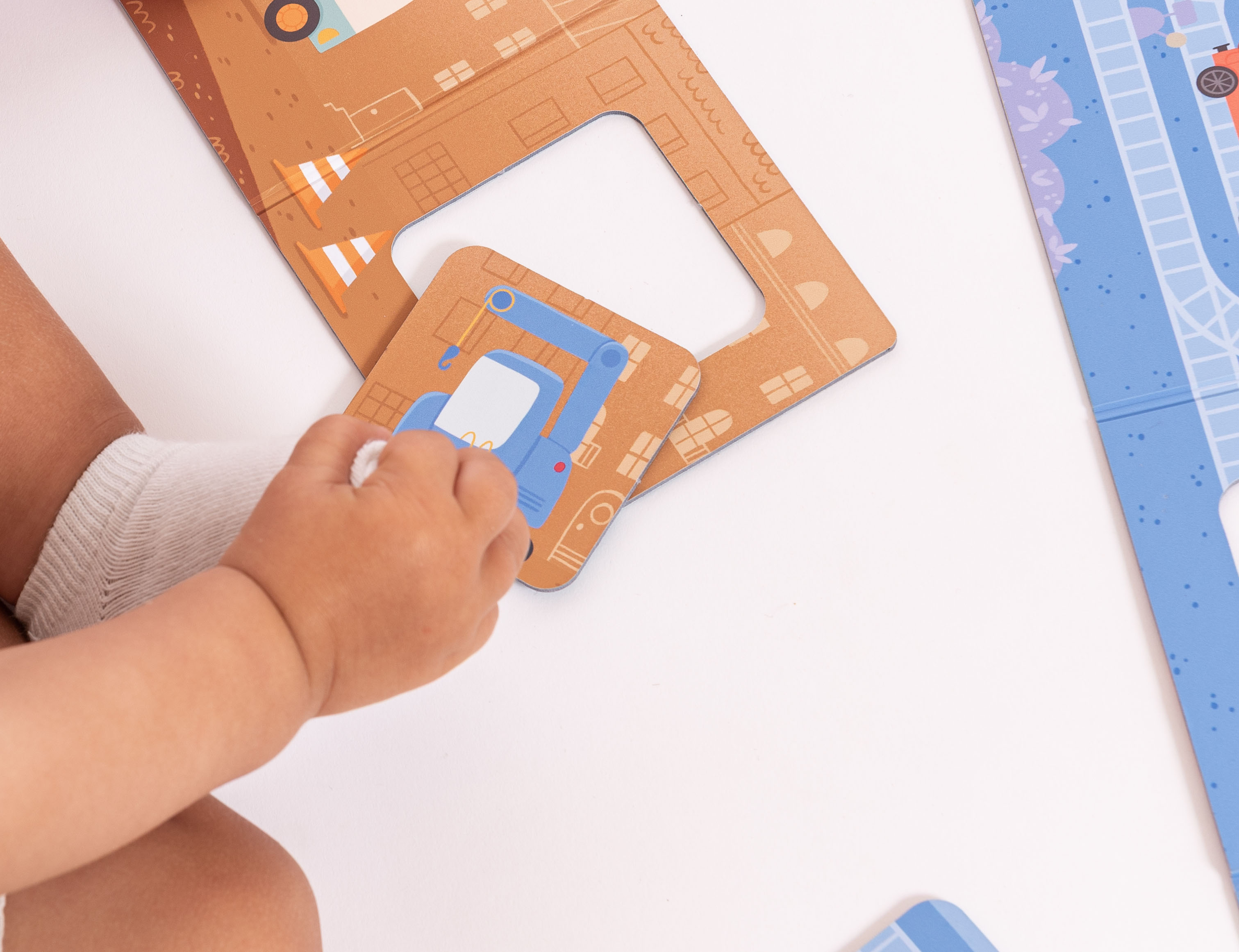 Přeskládej a vymýšlej. Zkoušejte, co se stane, když vozidla zaměníte. „Co dělá odrážedlo na stavbě?“ „Jezdí vlak po silnici?“ Hra rozvíjí fantazii a kombinování.