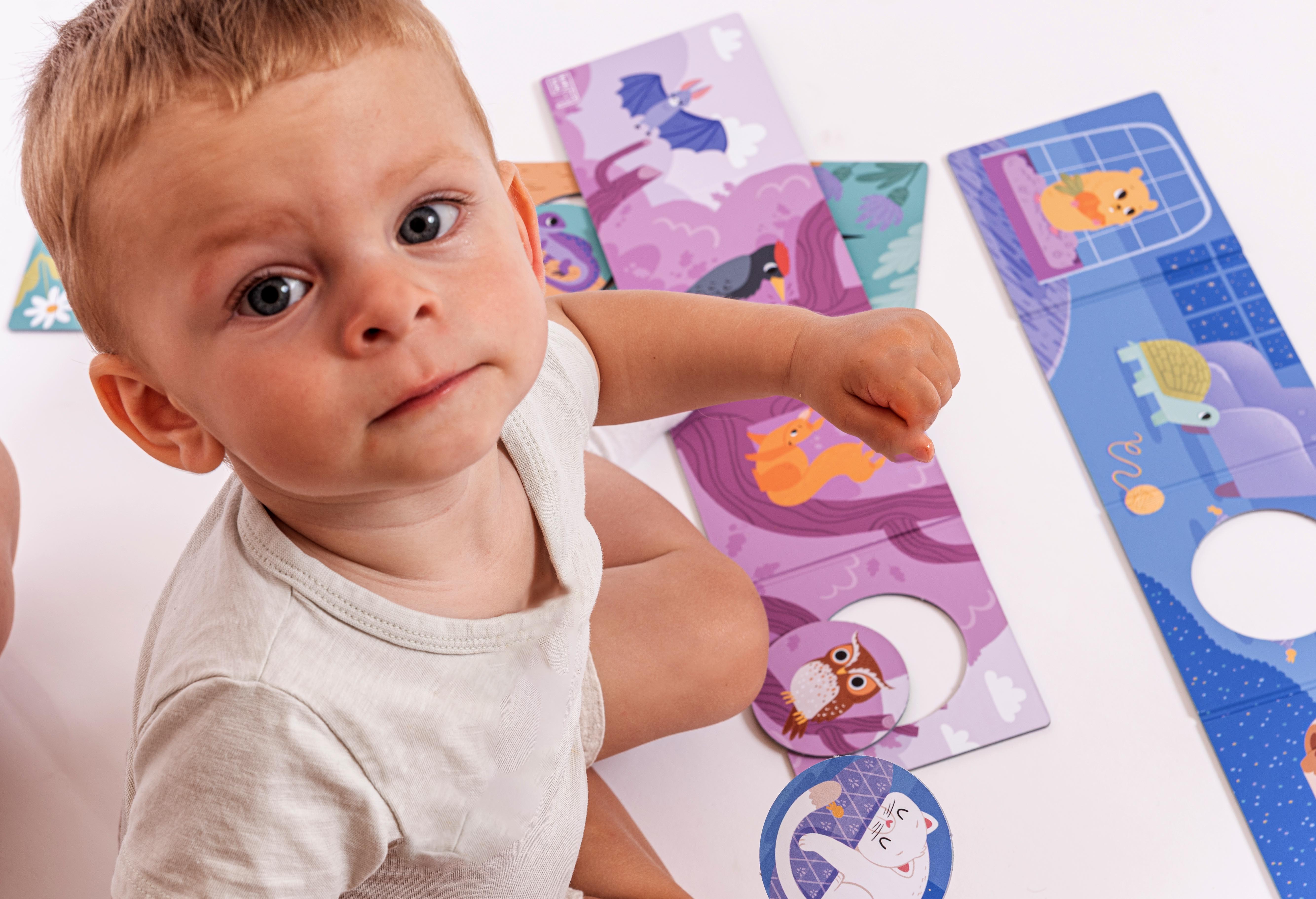 Střídejte zvířátka a pojmenovávejte je. Hra se znásobuje vkládáním kulatých dílků – děti hledají správné místo pro zvířátko a zároveň rozvíjejí jemnou motoriku, logiku i fantazii. Při použití jiných kombinací vznikají zajímavé nové souvislosti, které podporují k vyprávění nových příběhů.